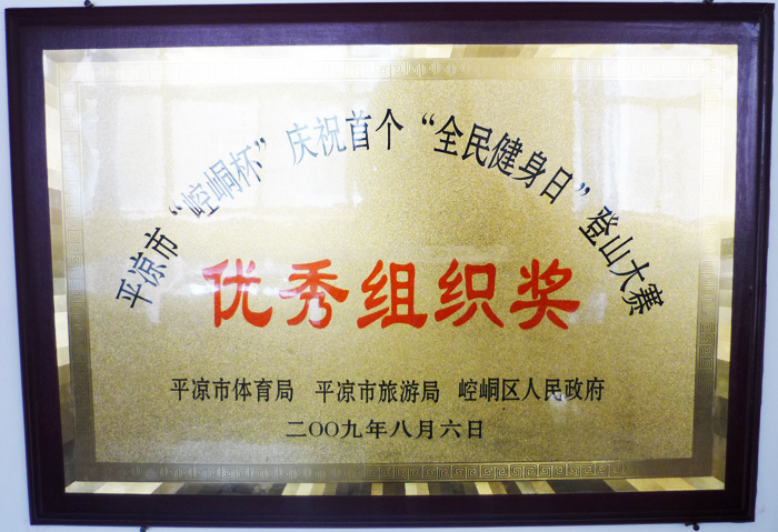 平凉市“崆峒杯”庆祝首个“全民健身日”登山大赛优秀组织奖