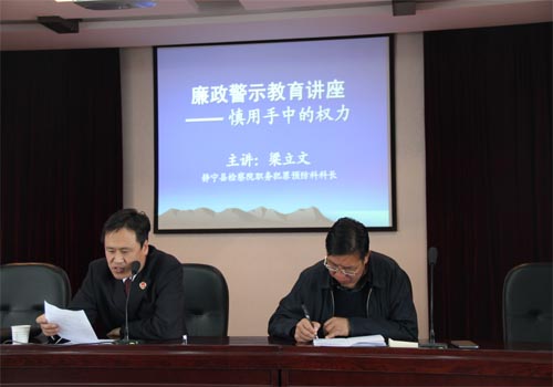 2014年5月13日,县运管局邀请县检察院职务犯罪预防科科长梁立文同志做了题为“慎用手中的权力、远离职务犯罪”的专题讲座。