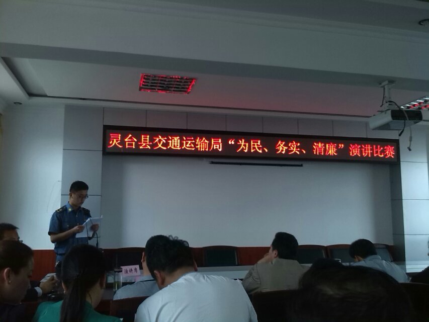 为深入开展党的群众路线教育实践活动,进一步改进工作作风,提高工作效能。 5月22日下午,灵台县道路运输管理局按照县交通运输局党组群众路线教实践活动安排部署,选派2名运政人员参加了全系统 “为民、务实、清廉”主题演讲比赛。